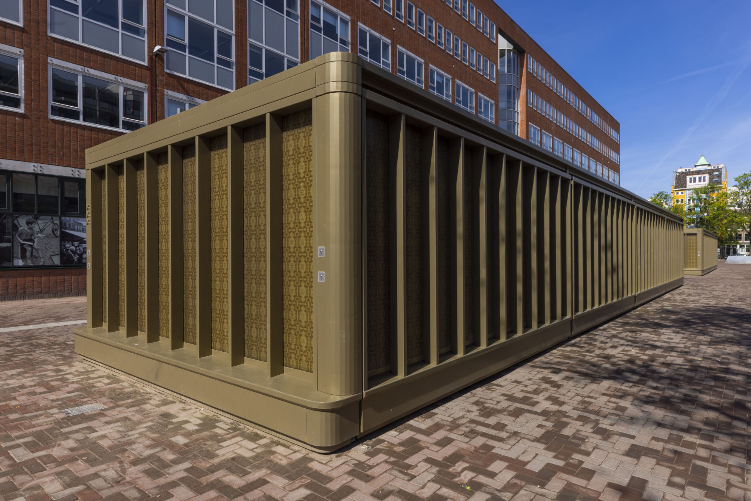 Multifunctionele box: De van binnenuit aangelichte boxgevels fungeren als expositie wanden op het plein. Hier kunnen grote afbeeldingen als openbare kunst het plein allure en sfeer geven. Door de translucente gevels worden de foto’s ook ‘s avonds sfeervol aangelicht. De boxhouders kiezen de foto’s uit een selectie en personaliseren daarmee zo hun box. Te denken valt aan afbeeldingen met bijvoorbeeld Amsterdamse sleutelfiguren zoals schilders, zangers, kunstenaars, historische foto’s of vrije kunst. Denkbaar is dat deze collectie periodiek vervangen wordt. Aan de zijkanten van de boxen zijn geïntegreerde zitbanken gemaakt zodat verblijfsplekken ontstaan buiten markttijden, de boxen dienen hier als openbaar zitmeubilair voor het plein.